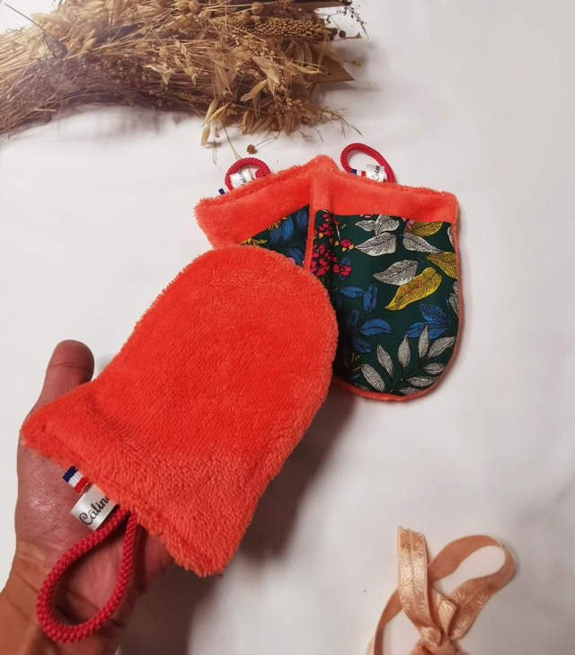 Chaque gant associe un coton imprimé coloré et une face en éponge bambou ultra-moelleuse, parfaite pour nettoyer et démaquiller la peau en douceur, même les zones sensibles comme les yeux.