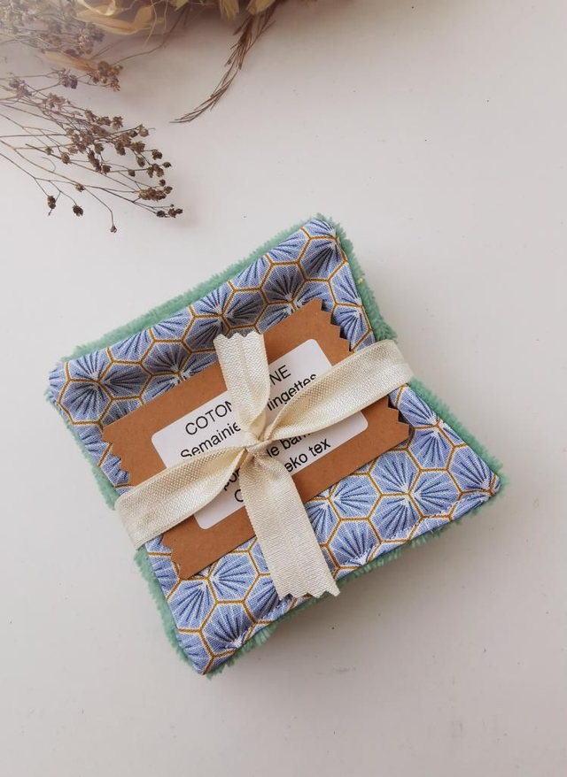 Le semainier Gustave comprend 7 lingettes lavables, parfaites pour le démaquillage, la toilette ou le change bébé. Fabriquées à la main, elles associent une éponge de bambou ultra douce, idéale pour les peaux sensibles, et un coton certifié Oeko-Tex, garanti sans substances nocives.