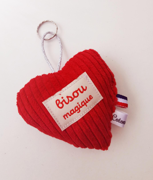 Colette, c’est le porte-clefs cœur cousu main qui accompagne chaque moment avec douceur et style. Réalisé en velours, jean ou fourrure, il offre un toucher agréable et un look unique. Son étiquette cousue porte le message de votre choix : mot d’amour, phrase drôle, réplique culte ou extrait de chanson pour créer un accessoire vraiment personnel.